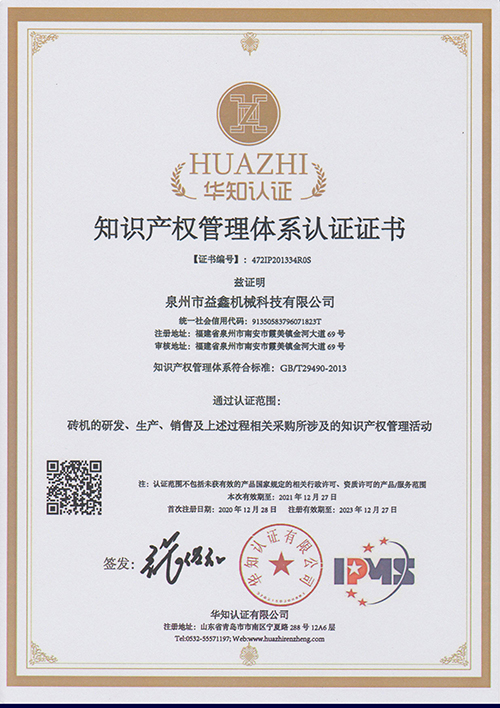 益鑫磚機(jī) | 知識產(chǎn)權(quán)管理體系認(rèn)證