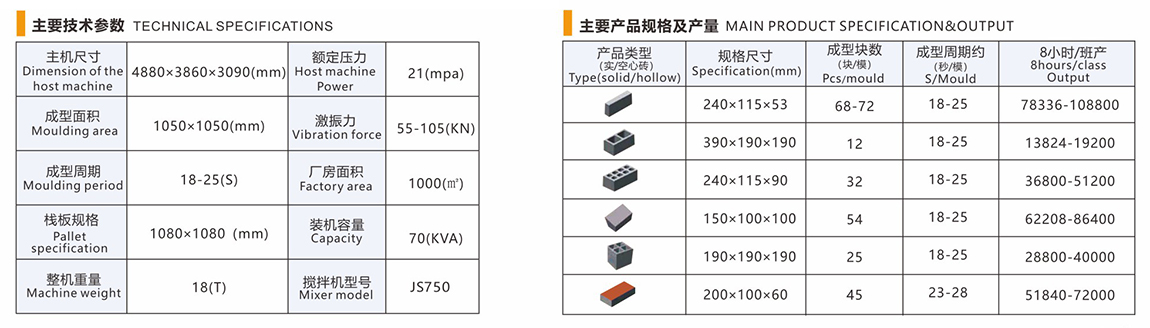 生產(chǎn)各種外墻砌塊、內(nèi)墻砌塊、花墻砌塊、樓板塊、護堤塊、連鎖塊、路緣石等砌塊,增加面料裝置可生產(chǎn)彩色路面磚