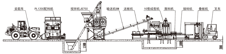 磚機標配:成型主機、液壓站、PLC智能電控箱、送料帶、送板機、接磚機